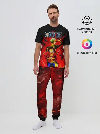 Мужская пижама с брюками / Зоро и Луффи в огне One Piece