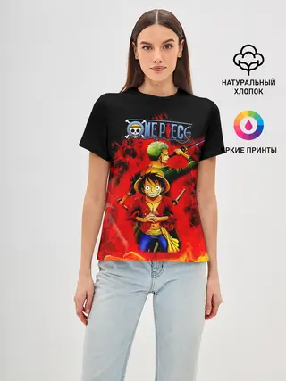 Женская базовая футболка / Зоро и Луффи в огне One Piece
