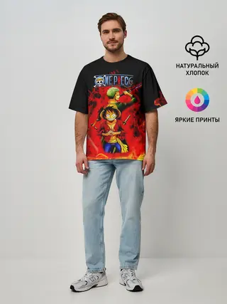 Мужская футболка оверсайз / Зоро и Луффи в огне One Piece