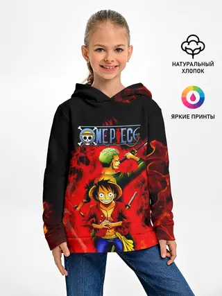 Худи мужской база хлопок / Зоро и Луффи в огне One Piece