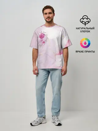 Мужская футболка оверсайз / Цветы роспись акварелью
