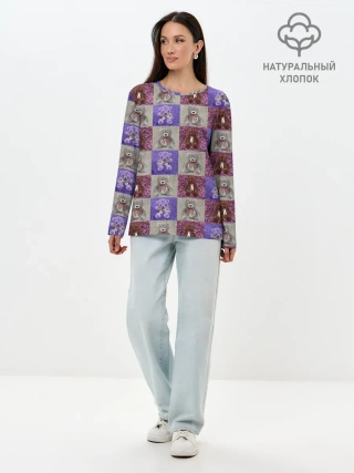Лонгслив женский. Хлопок / Медведи на ковре