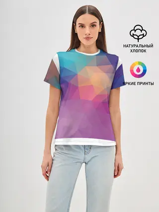 Женская футболка оверсайз / Цветные полигоны - Градиент