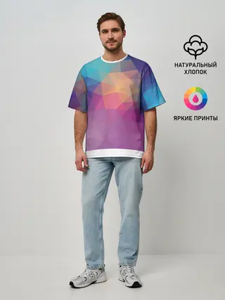 Мужская футболка оверсайз / Цветные полигоны - Градиент