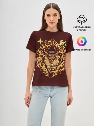 Женская базовая футболка / One Piece Портгас Д. Эйс в огне