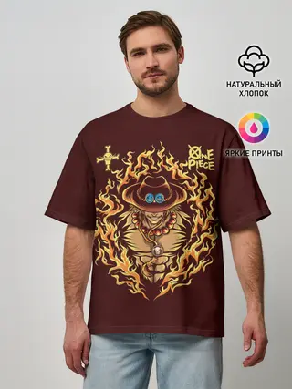 Мужская футболка оверсайз / One Piece Портгас Д. Эйс в огне