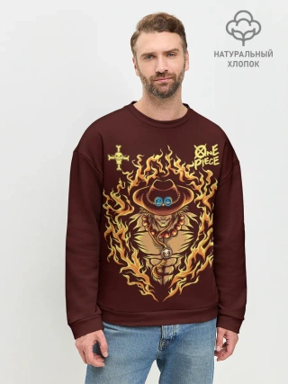 Мужской свитшот базовый / One Piece Портгас Д. Эйс в огне