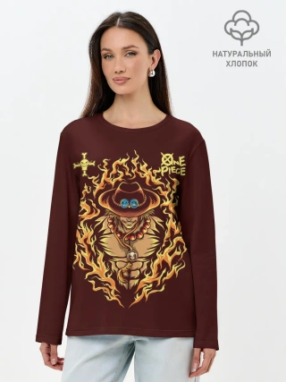 Лонгслив женский. Хлопок / One Piece Портгас Д. Эйс в огне