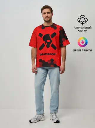 Мужская футболка оверсайз / Deathloop - Череп - Соты
