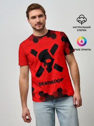 Мужская базовая футболка / Deathloop - Череп - Соты