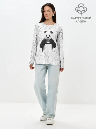Лонгслив женский. Хлопок / Панда Любовь Сердце Брызги