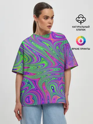 Женская футболка оверсайз / Неоновый абстрактный узор