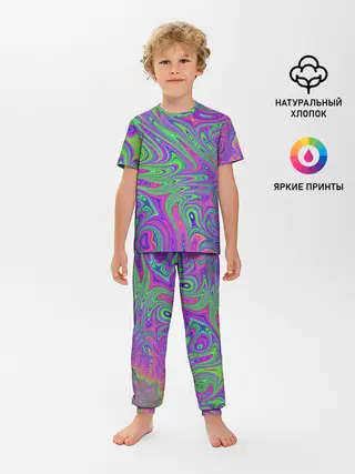 Мужская пижама с брюками / Неоновый абстрактный узор