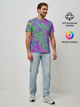Мужская футболка оверсайз / Неоновый абстрактный узор