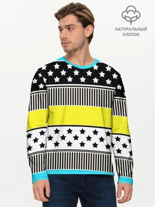 Мужской лонгслив базовый / Неоновый яркий полосатый узор