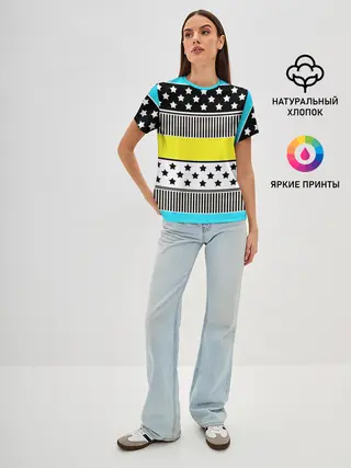 Женская базовая футболка / Неоновый яркий полосатый узор