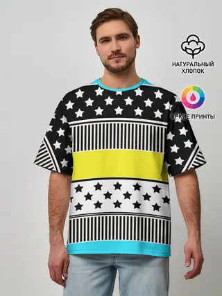 Мужская футболка оверсайз / Неоновый яркий полосатый узор