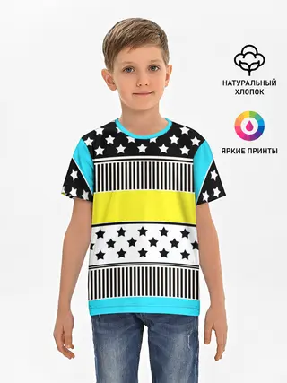 Детская базовая футболка / Неоновый яркий полосатый узор