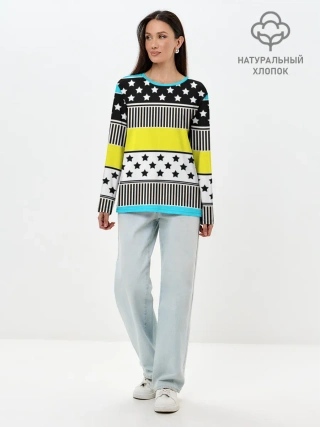 Лонгслив женский. Хлопок / Неоновый яркий полосатый узор