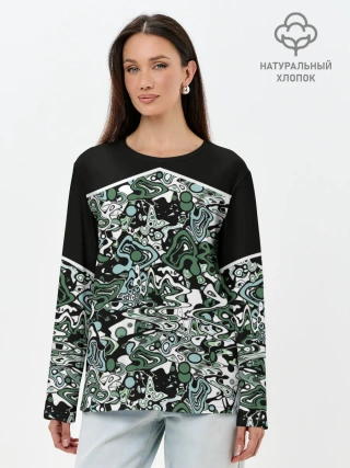 Лонгслив женский. Хлопок / Черно-зеленые каракули