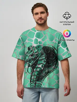Мужская футболка оверсайз / Кобра. Змеиный стиль