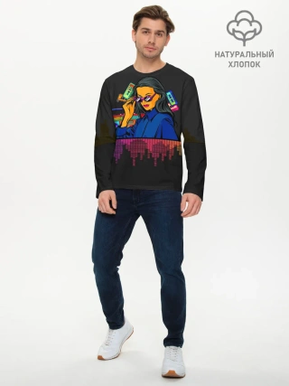 Мужской лонгслив базовый / Ретро стиль. Девушка.