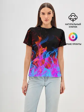 Женская футболка оверсайз / ТРИ ОГНЯ / FIRE / СИНИЙ ОГОНЬ