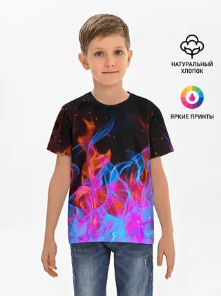 Детская базовая футболка / ТРИ ОГНЯ / FIRE / СИНИЙ ОГОНЬ