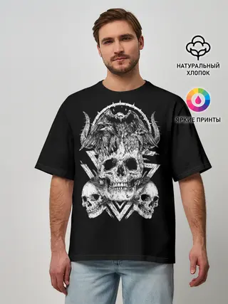 Мужская футболка оверсайз / Черепа и Вороны | Skulls Raven