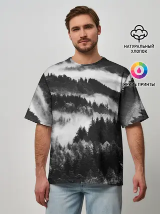 Мужская футболка оверсайз / ТУМАННЫЙ ЛЕС / МРАЧНЫЙ ЛЕС