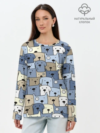 Лонгслив женский. Хлопок / Собачки рисунок паттерном