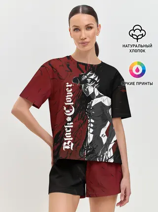 Женская футболка оверсайз / Мощный торс Аста Чёрный клевер