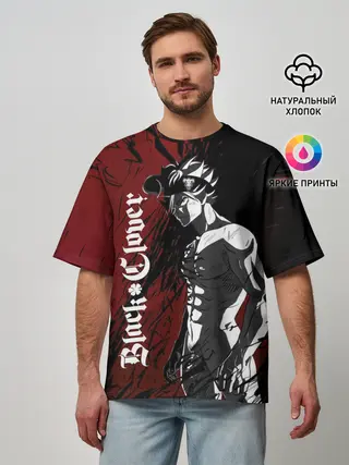 Мужская футболка оверсайз / Мощный торс Аста Чёрный клевер