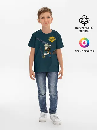 Детская базовая футболка / Чёрный клевер Аста книга магий