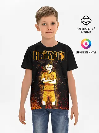 Детская базовая футболка / ВОЛЕЙБОЛ!! Нишиноя в огне