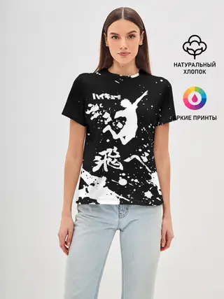 Женская базовая футболка / Fly High Haikyu!! черно - белый