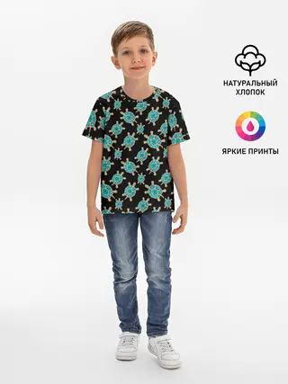 Детская базовая футболка / Бирюзовые черепашки брошка