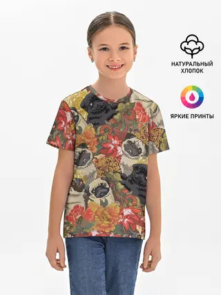 Мужская футболка оверсайз / Мопсики | Цветочки