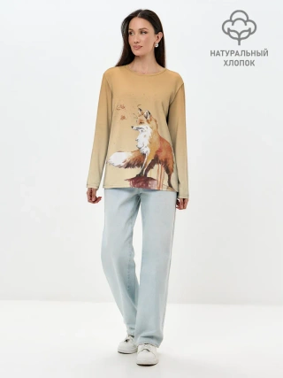 Лонгслив женский. Хлопок / акварельная лиса задумчивости