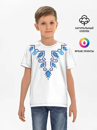 Детская базовая футболка / Славянский узор сине-голубой