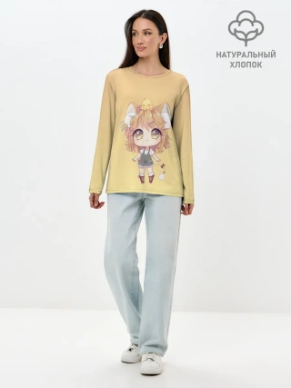 Лонгслив женский. Хлопок / малышка чиби и цыпленок