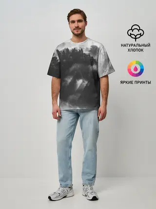 Мужская футболка оверсайз / Туман в лесу