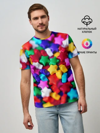 Мужская базовая футболка / Разноцветные звездочки звезды