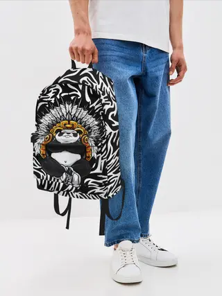 Рюкзак джинсовый / Панда Любовь Сердце Брызги