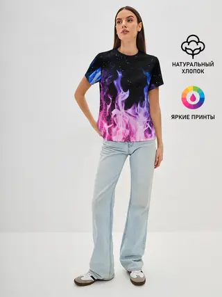 Женская базовая футболка / НЕОНОВЫЙ ОГОНЬ