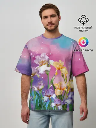 Мужская футболка оверсайз / Сказочные Ирисы