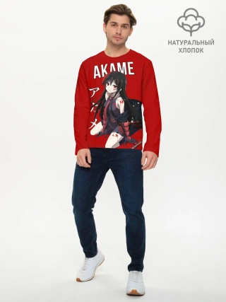 Мужской лонгслив базовый / Убийца Акаме на красном фоне