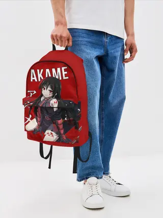 Рюкзак джинсовый / Убийца Акаме на красном фоне