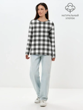 Лонгслив женский. Хлопок / Черно-белая клетка