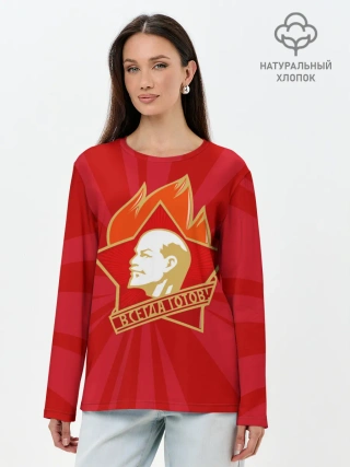 Лонгслив женский. Хлопок / Пионерский значок